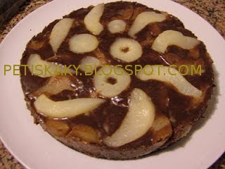 Achei que ficaria muito melhor se levasse algumas fatias de pêra a enfeitar. Cozi mais umas 2 e repeti o mesmo processo anterior.